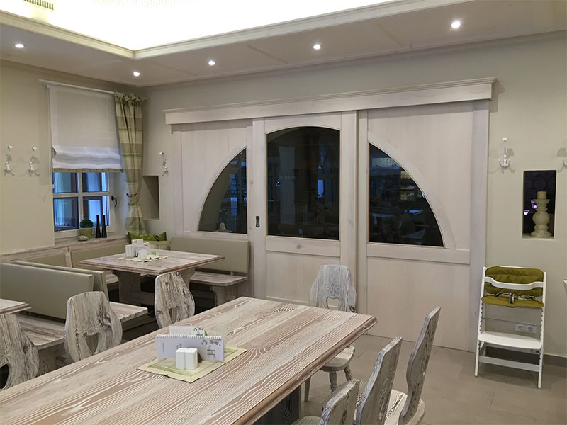 Wir fertigen für Sie einzelne Gastro-Möbel wie Tische, Stühle, Schank, Anrichten, Kästen, Kommoden etc. an. Gerne planen wir auch ganz individuelle Raumkonzepte für Ihren Betrieb mit Sitzmöglichkeiten, Tischen, Barbereich, Eingangsbereich, Garderobe, usw. sowie auf Wunsch auch Wandvertäfelungen, Deckenverkleidungen, Stiegen, Türen und vieles mehr. Auch Reparaturen oder Erweiterungen führen wir gerne durch. Maßmöbel von Ihrem Tischler bieten ein ungeahntes Potential an Gestaltungs- und Nutzungsmöglichkeiten für Gastronomiebetriebe